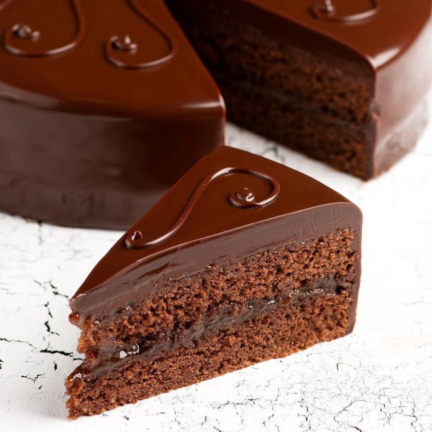 Bizcocho a base de harina de almendras, chocolate y mantequilla humedecido con ámbar amaretto, relleno de jam de albaricoque, cubierto de ganache de chocolate semiamargo Valrhona con un toque de apricot brandy. 10-12 Porciones.