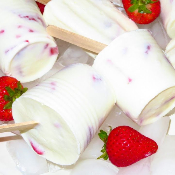 Paleta de fresas con crema refrescante paleta preparada con trozos de fresa natural y cremosa mezcla láctea, dulce y deliciosa en cada mordida. perfecta para consentirte a cualquier hora.