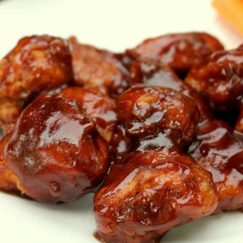 Deliciosos boneless bañados en salsa BBQ, suaves por dentro y crujientes por fuera. Preparados al momento para que disfrutes el auténtico sabor ahumado y dulce de la BBQ.”