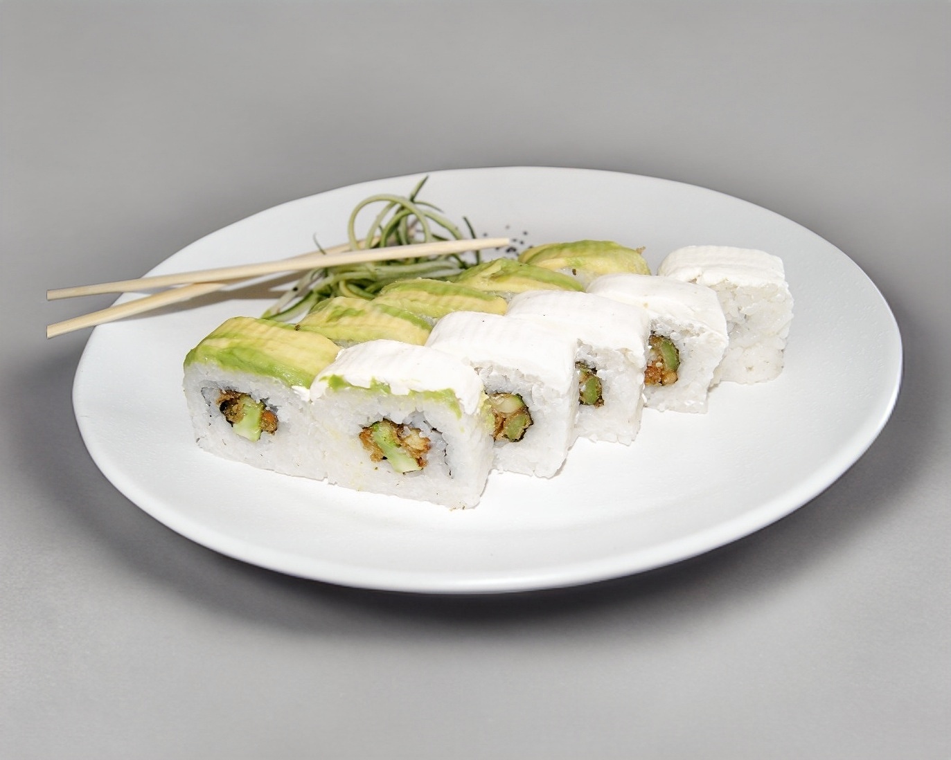 Zanahoria, calabaza, morrón, brócoli, por dentro por fuera aguacate, queso crema.