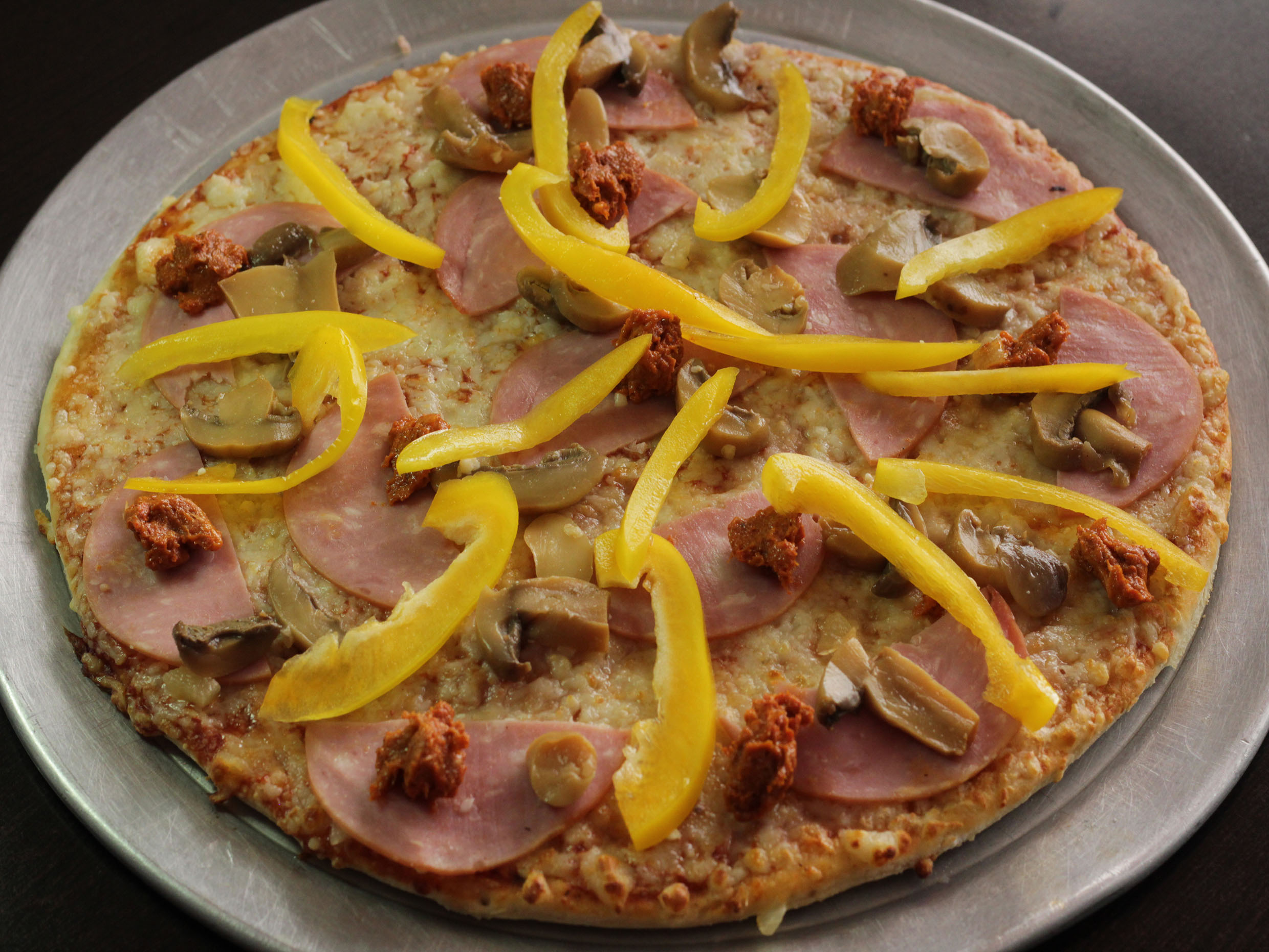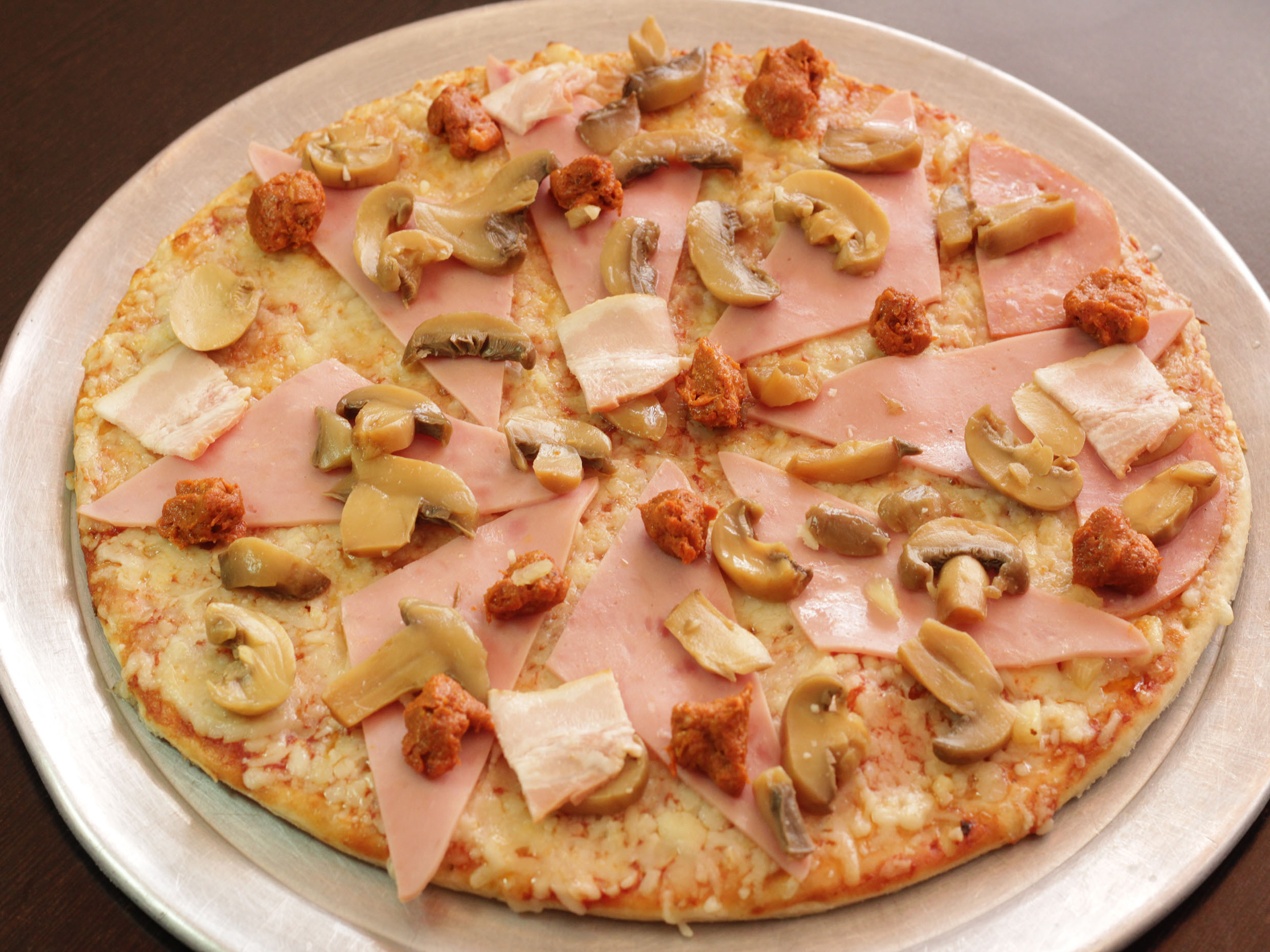 JAMÓN, TOCINO, CHORIZO, CHAMPIÑÓN Y EXTRA QUESO
