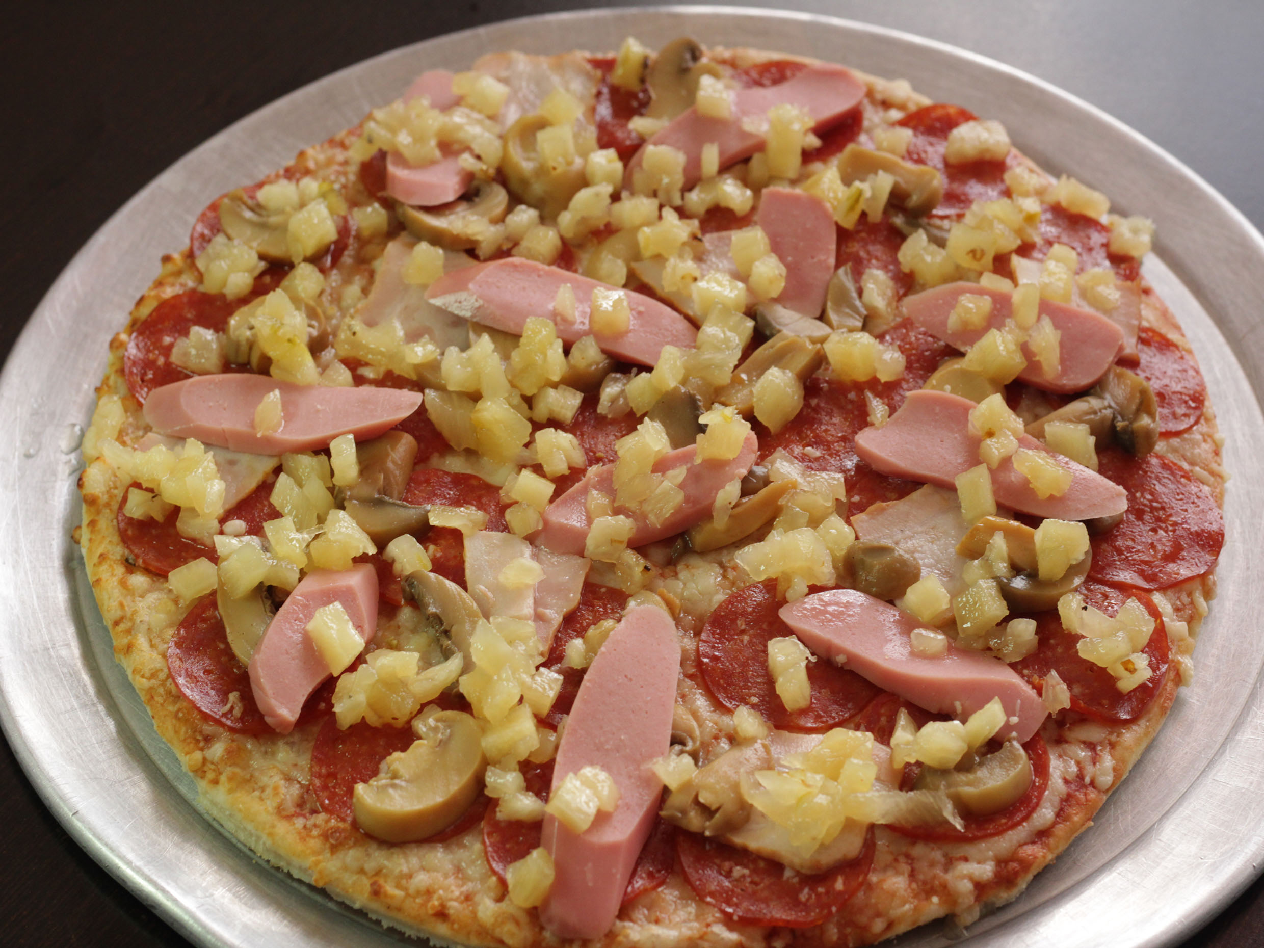 PEPERONI, SALCHICHA, CHAMPIÑOM, PIÑA Y EXTRA QUESO