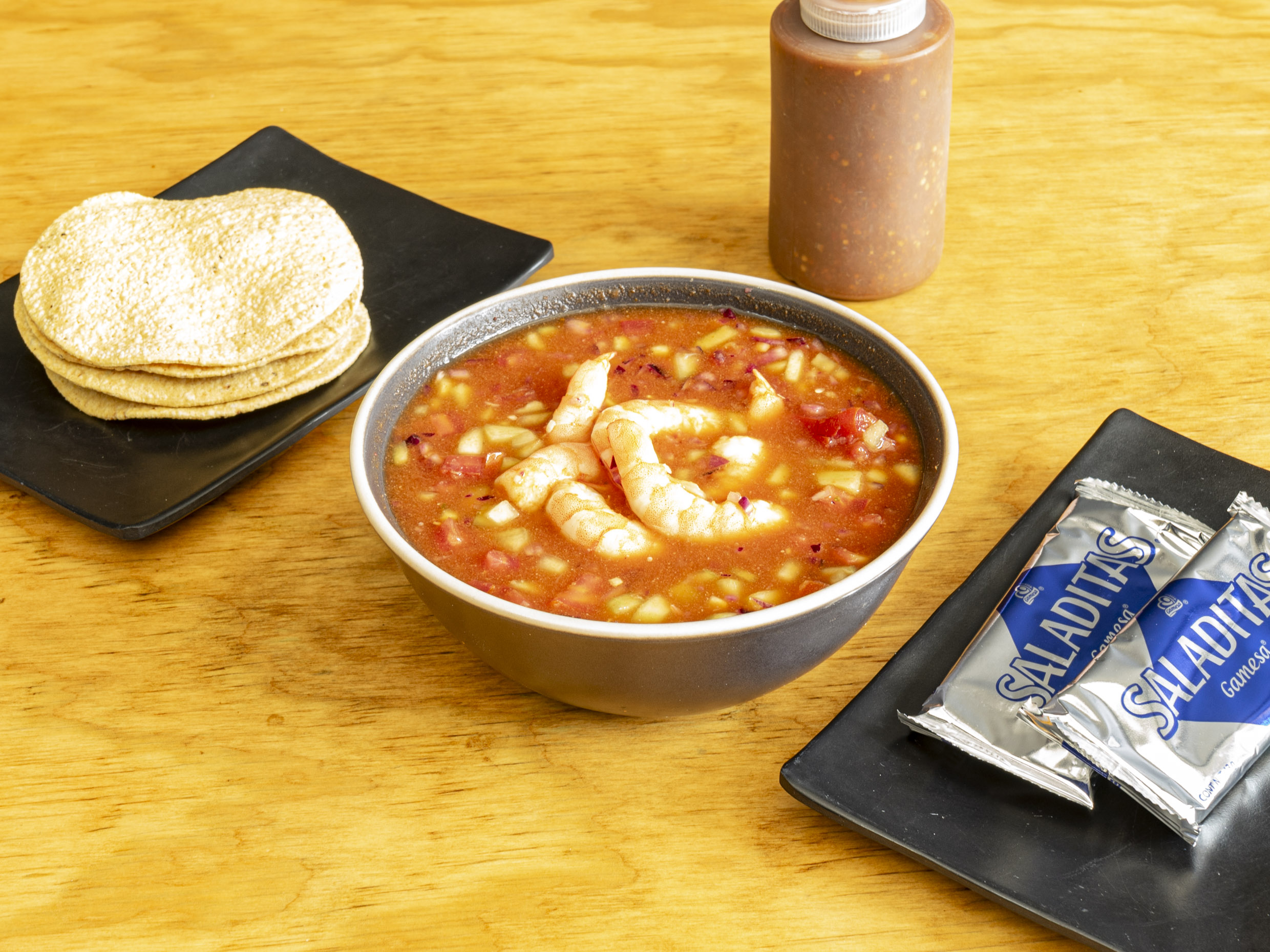 Deliciosa combinación de camarón cocido y crudo, servidos en nuestra rica salsa de chile chiltepin