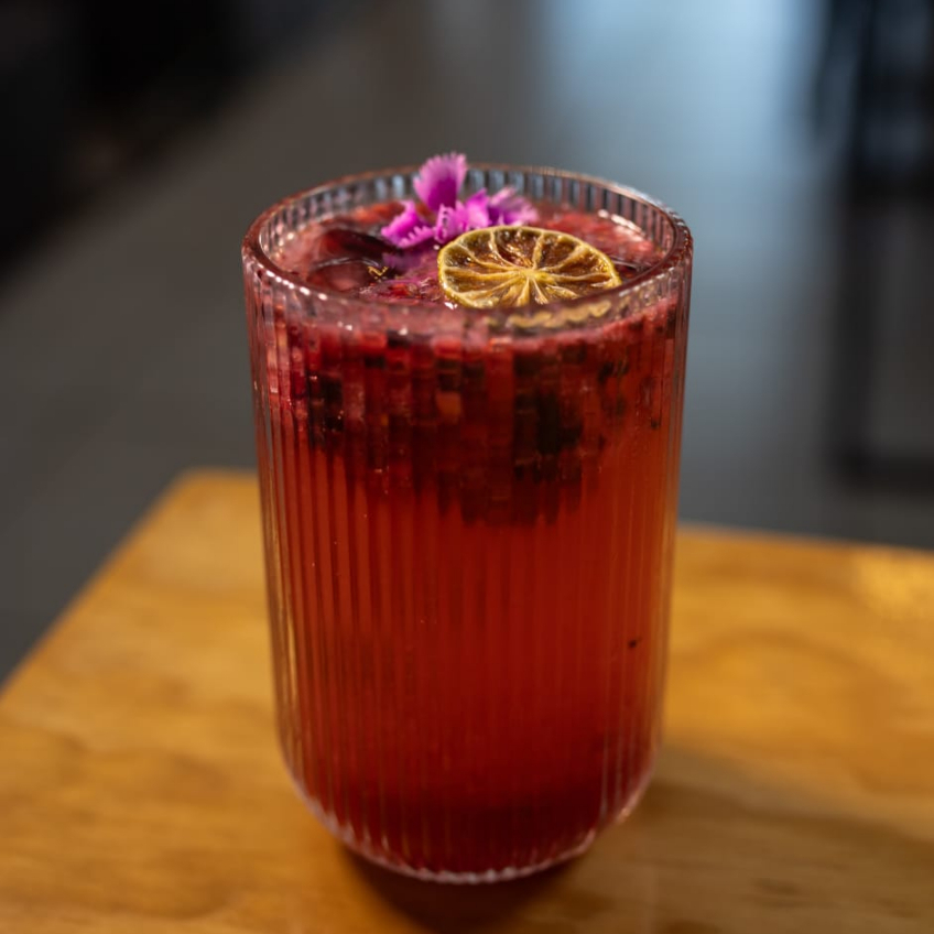 Deliciosa tostadita de camarón macerado en limón, fruta de temporada, pepino, cebolla morada, jícama, cilantro y pimiento rojo, bañada con salsa de mango.