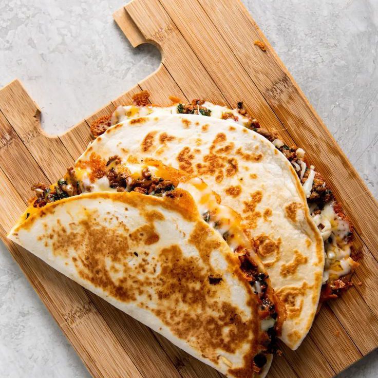 Tortilla de harina, base de queso y el guiso de tu preferencia.