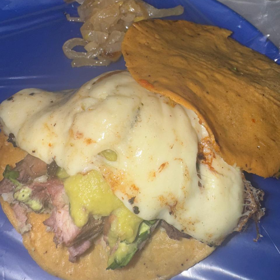 tortilla de harina, queso, barbacoa