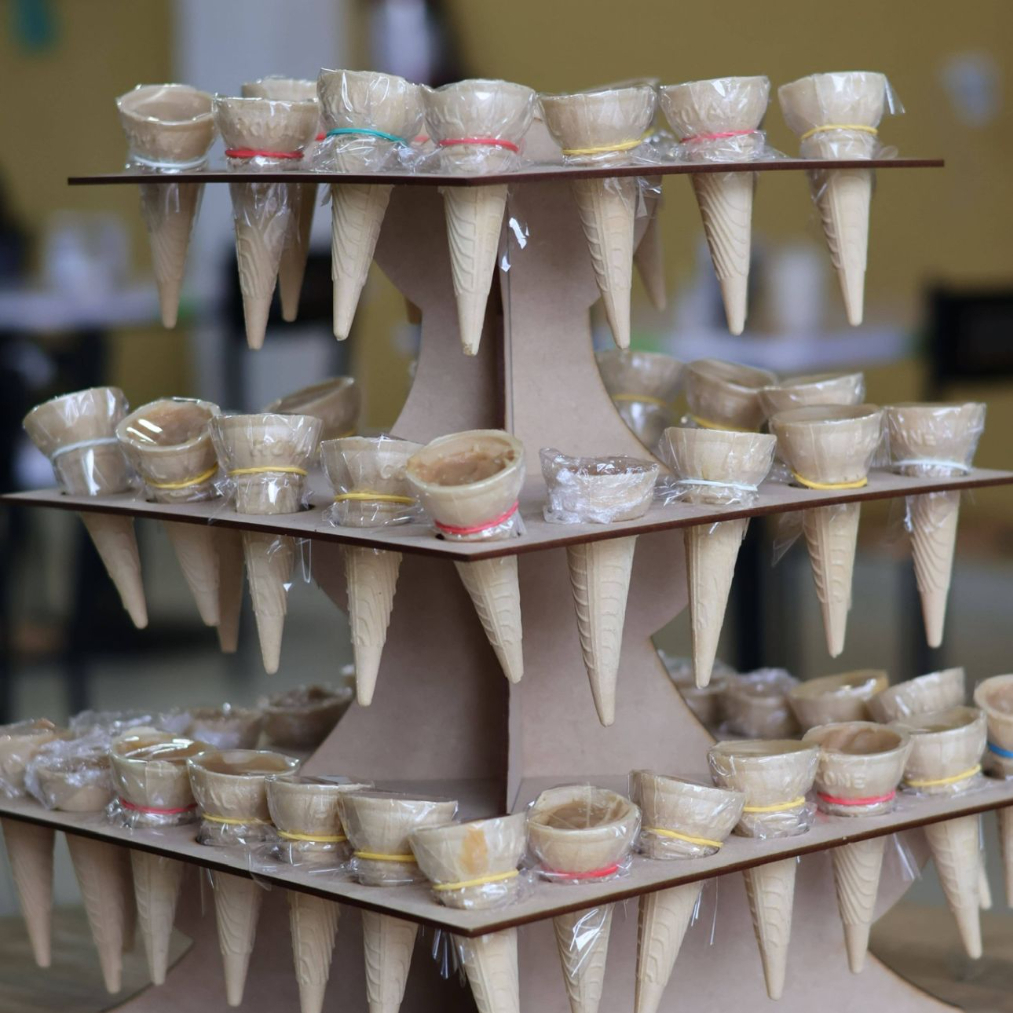 Cono de oblea relleno de cajeta de San Juan