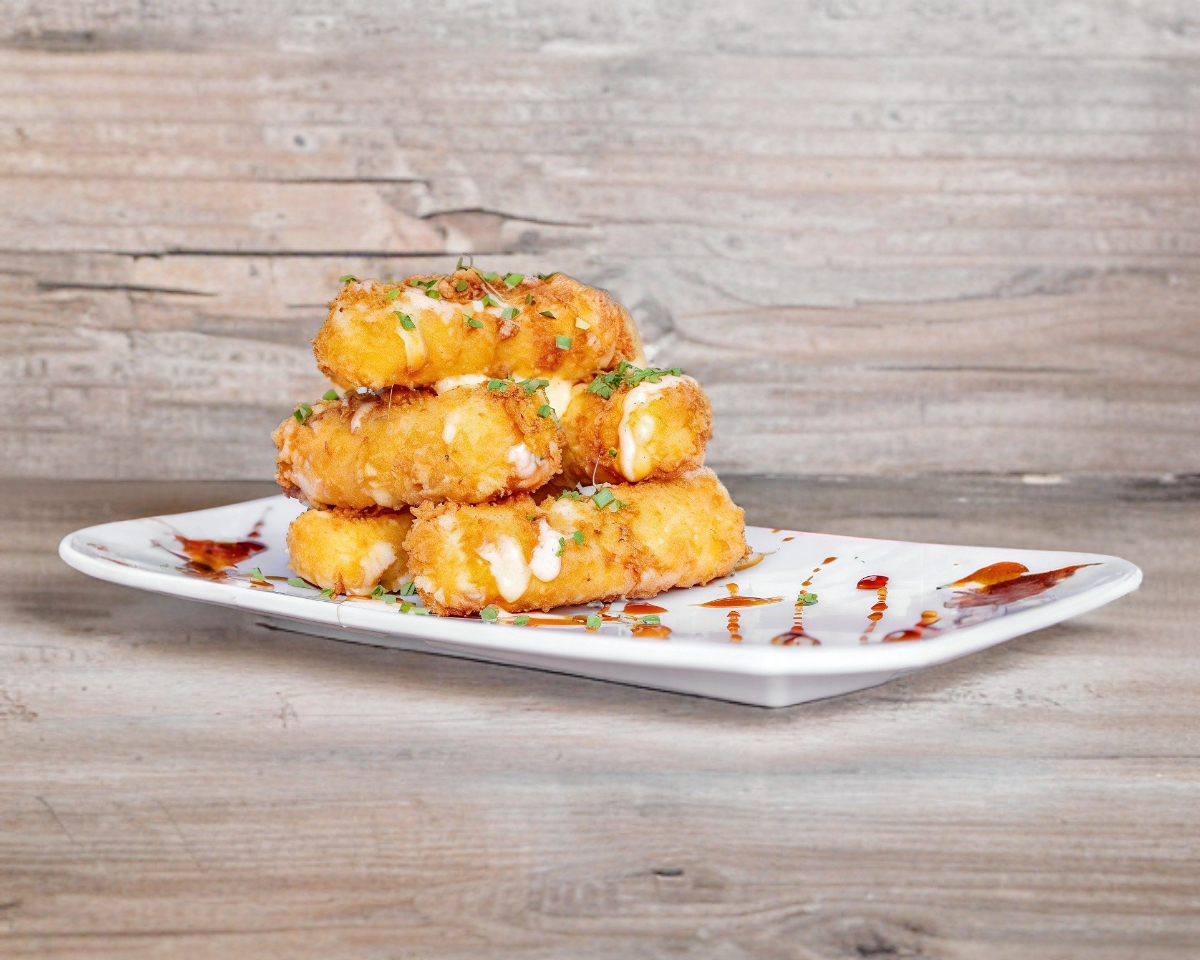 Panko, presentados con un toque de salsa anguila, aderezo aurora y cebollin, acompañados de un dip de aderezo ranch
