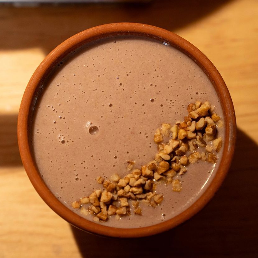 Cremoso atole con un sabor suave y delicioso, preparado con nueces y un toque de dulzura.