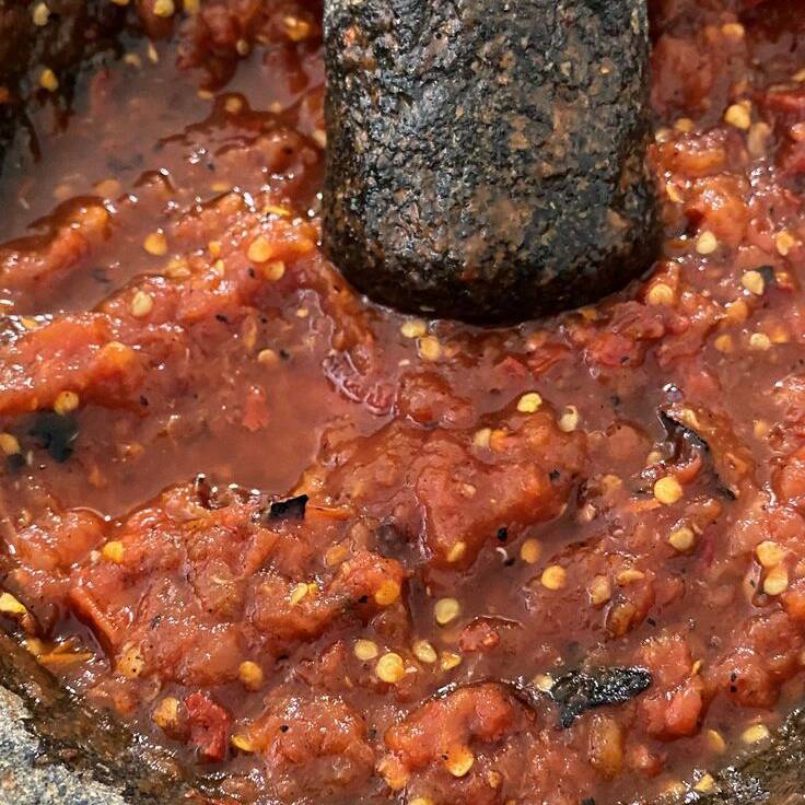 Exquisita salsa de molcajete para acompañar tu tamal.