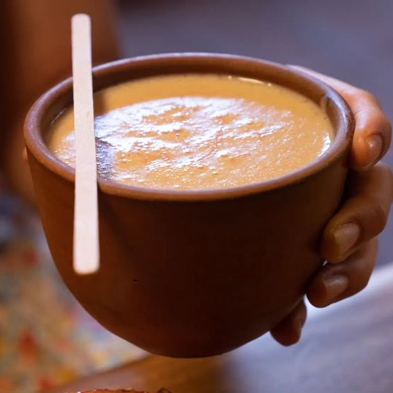 Delicioso atole, con la cremosidad perfecta y el toque tropical de la fruta fresca .
