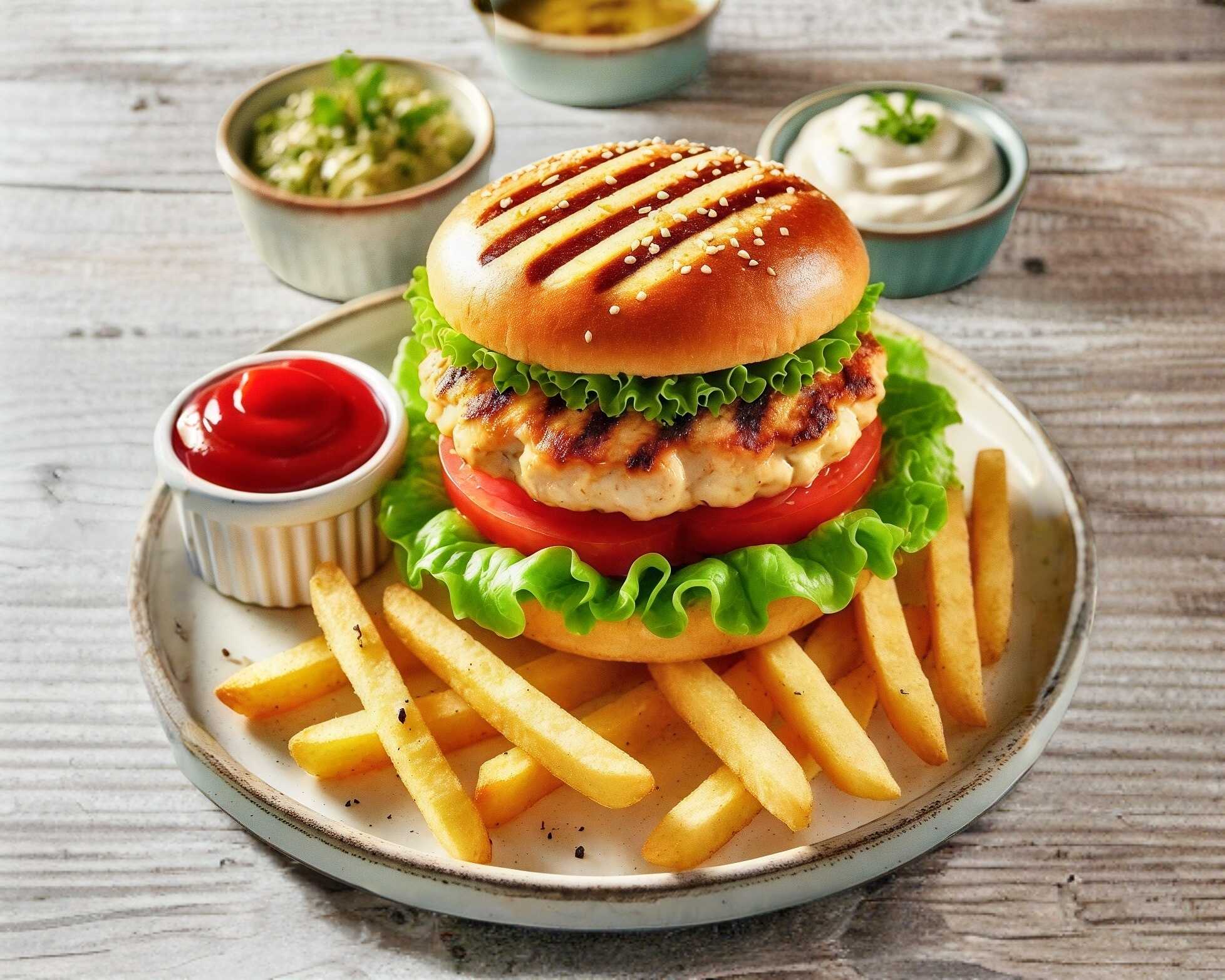 Hamburguesa de Pollo + Papas a la Francesa