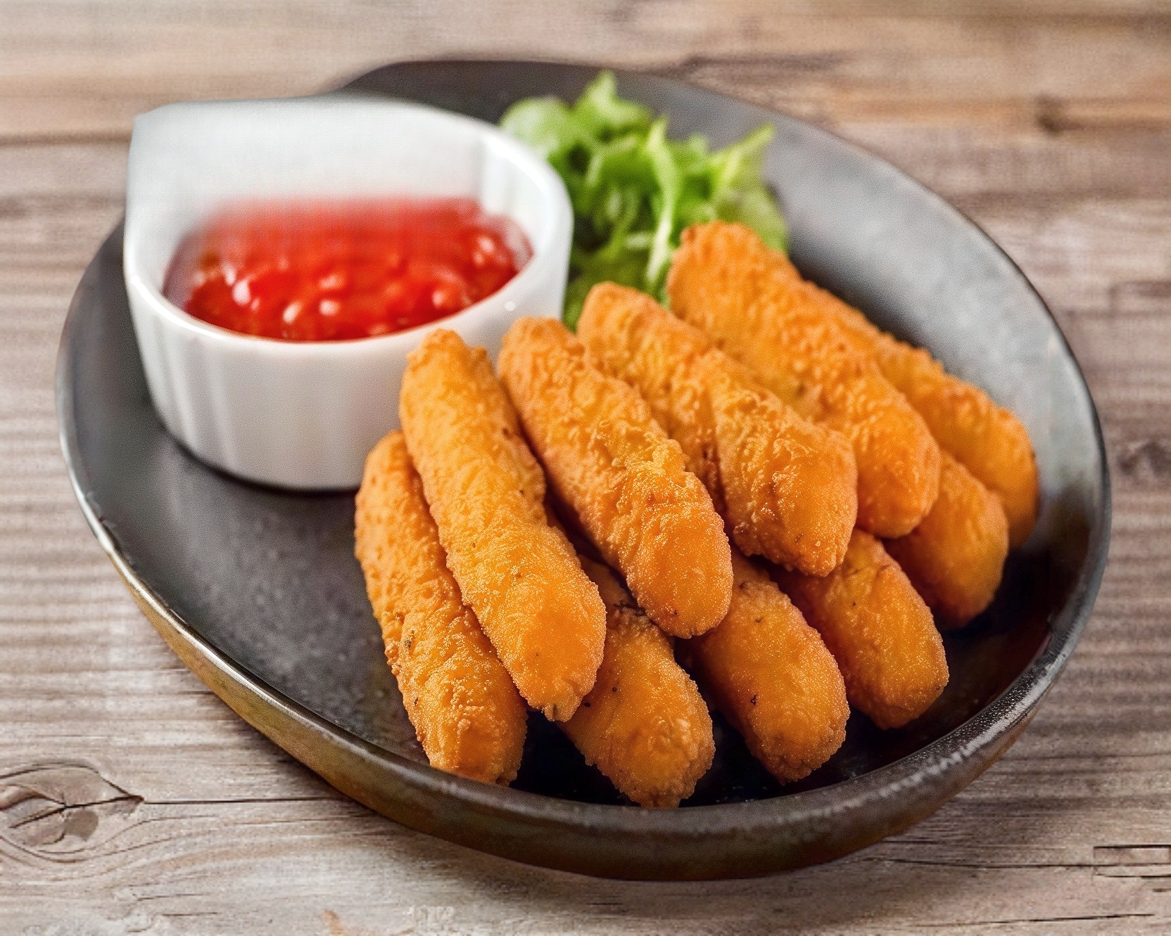 dedos de queso, papas y aderezos