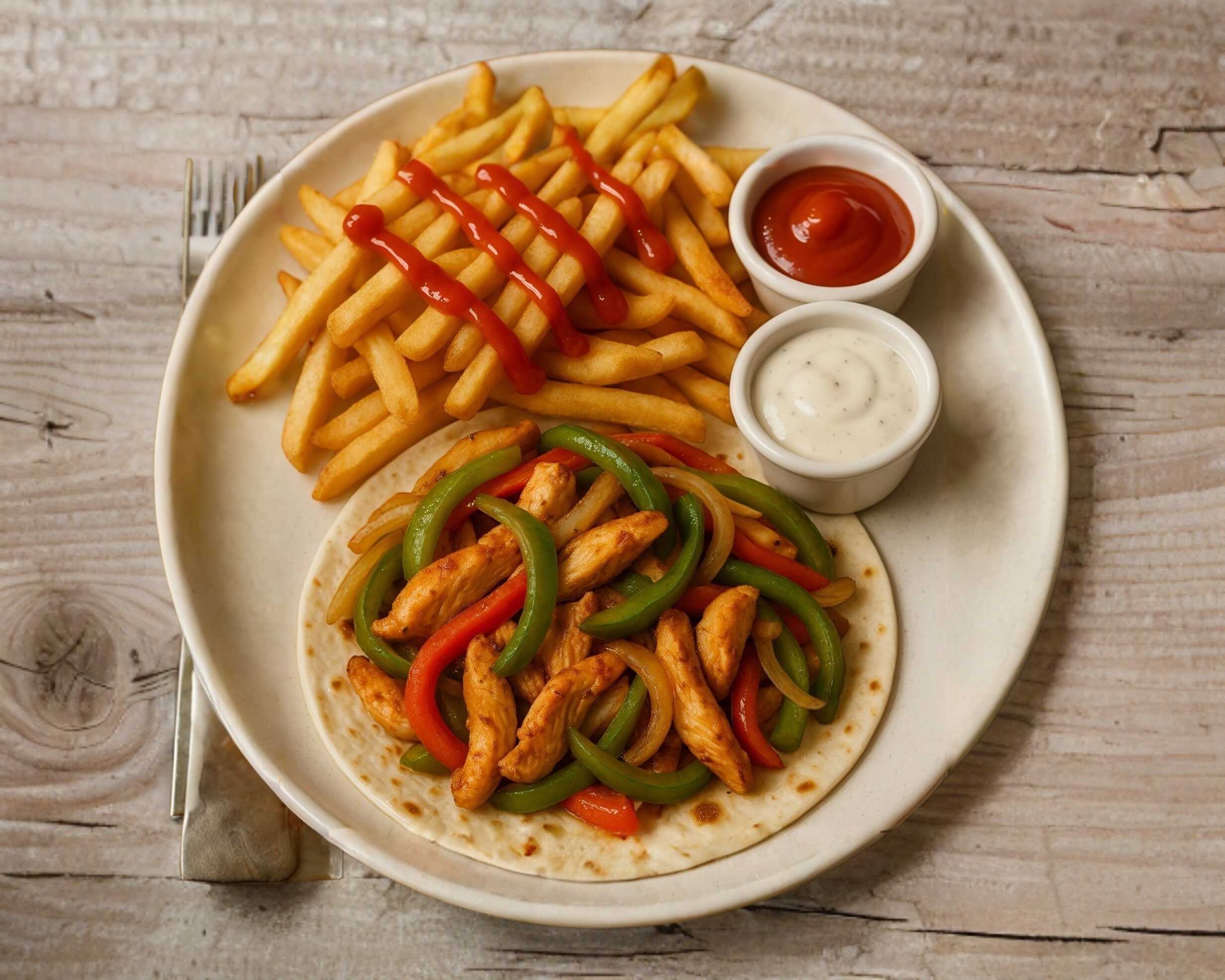 3 Fajitas de pollo + papas a la francesa + aderezos