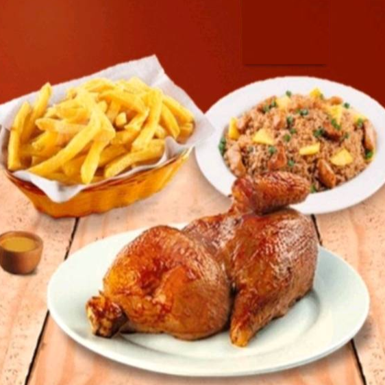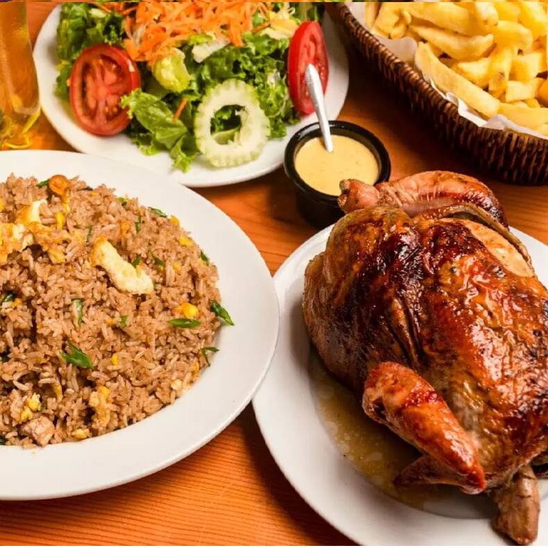 1/2 Pollo a la brasa con CHAUFA, ENSALADA y papas
