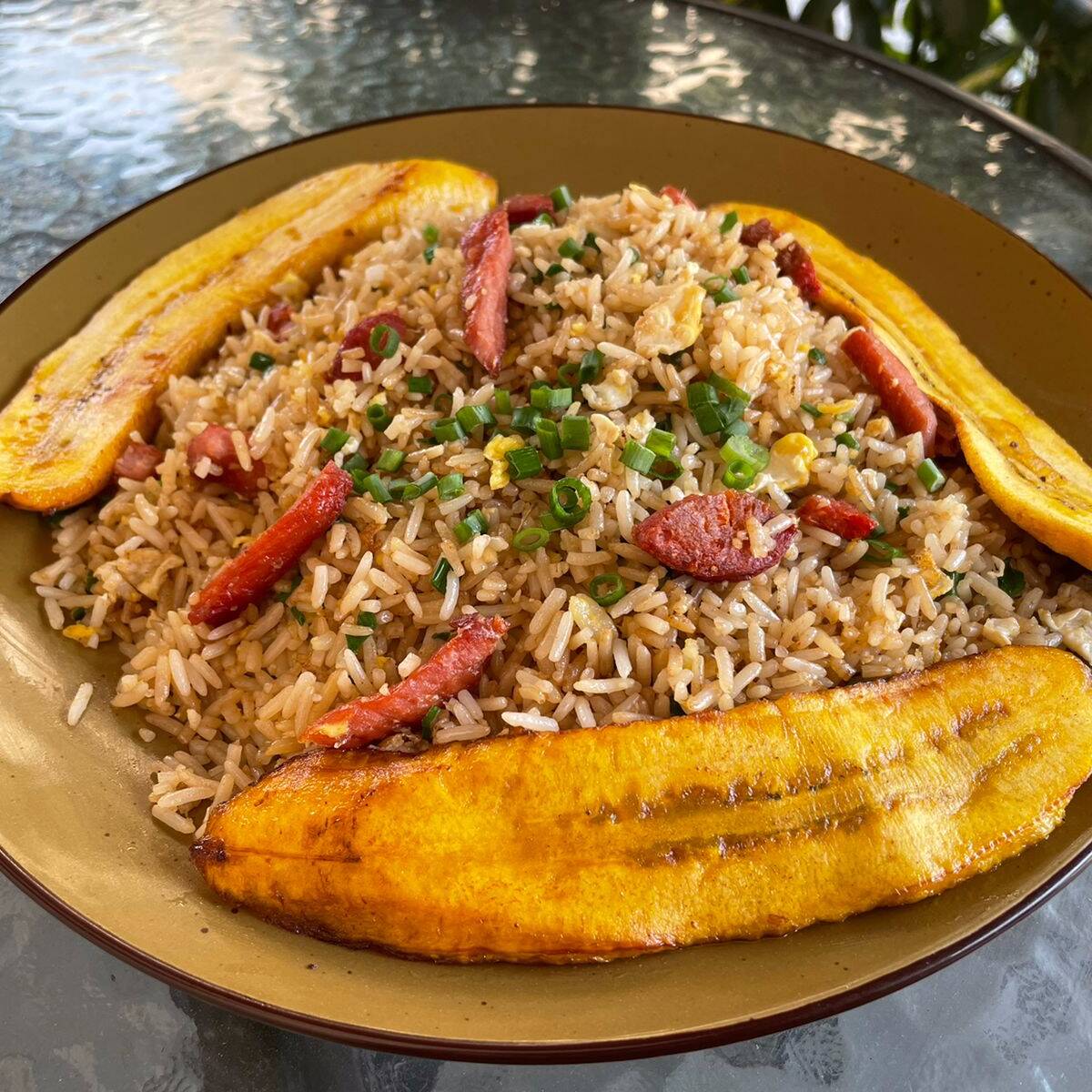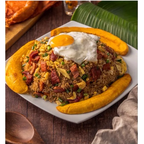 Arroz chaufa con full cecina + porción de plátano frito