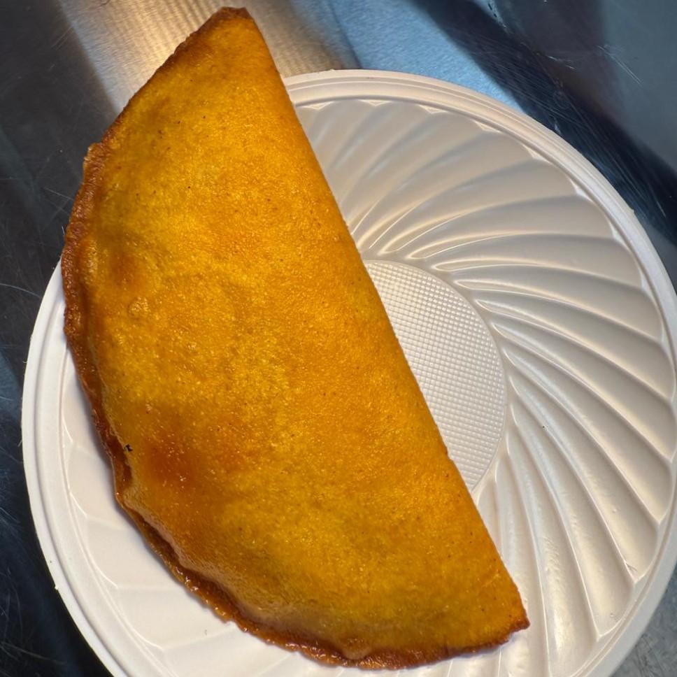 Empanada dorada con costra burbujeante. Relleno de suave puré de papa blanca con queso derretido. ¡La clásica más adictiva de Miraflores!