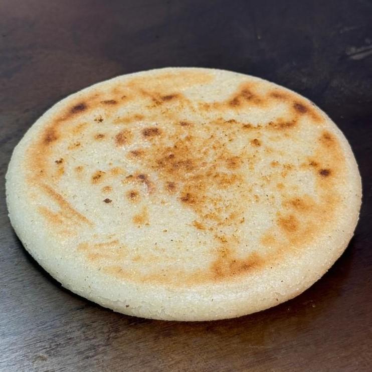 La arepa solita, crujiente por fuera y suave por dentro. ¡Perfecta para acompañar tus rellenos favoritos!