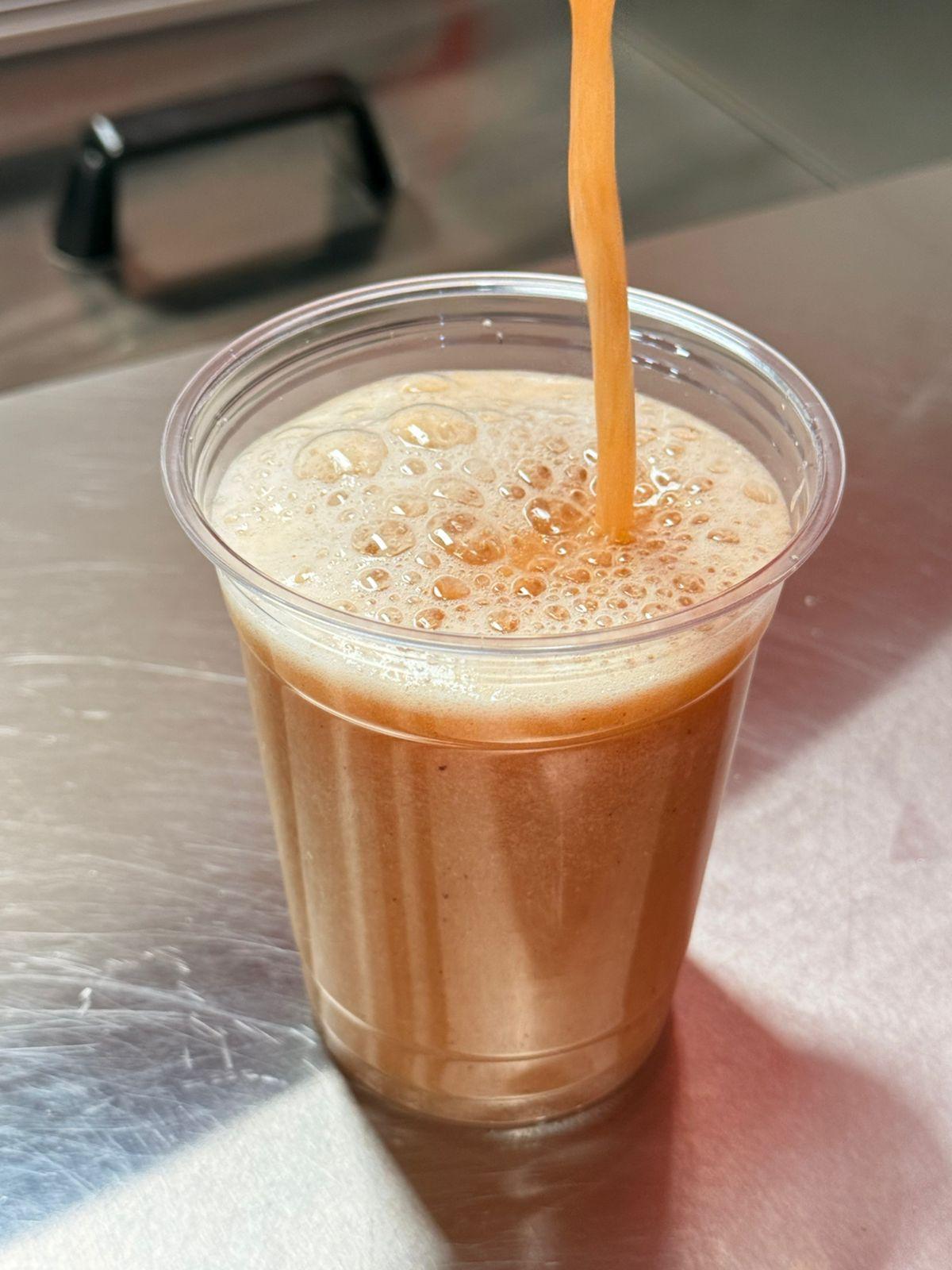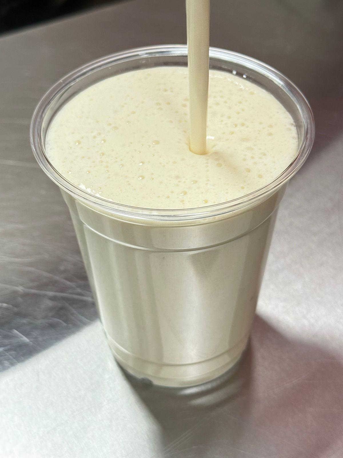 Nuestro batido venezolano más popular. Hecho con la dulzura natural del cambur (banana), leche fresca y un toque de vainilla. Perfectamente espeso, espumoso y frío. ¡Ideal para un boost de energía o como postre!