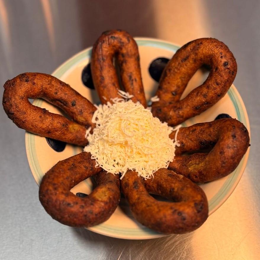 Anillos de plátano maduro frito, endulzados con papelón y espolvoreados con queso. ¡Una joya zuliana!