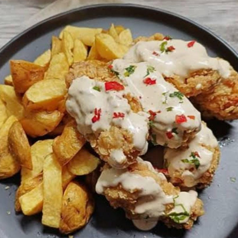 6 alitas asevichadas papas cremas