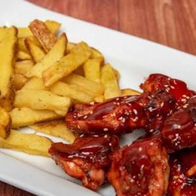 6 alitas BBQ papás y cremas