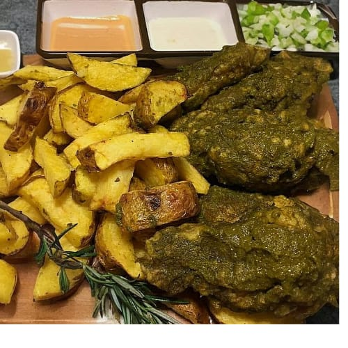 6pz alitas bañadas en salsa de pachamanca+papas nativas+salsa casera