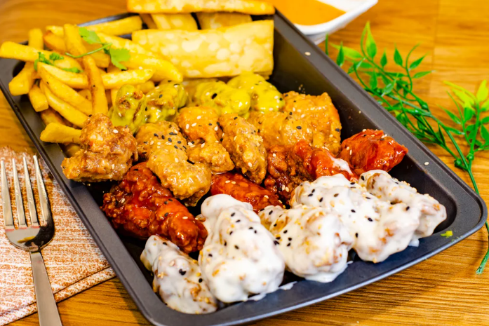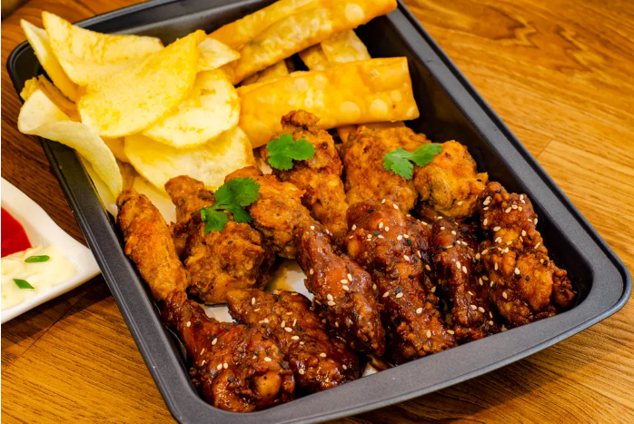 10 alitas + 200g de papas fritas + 2 tequeños + 1 bebida