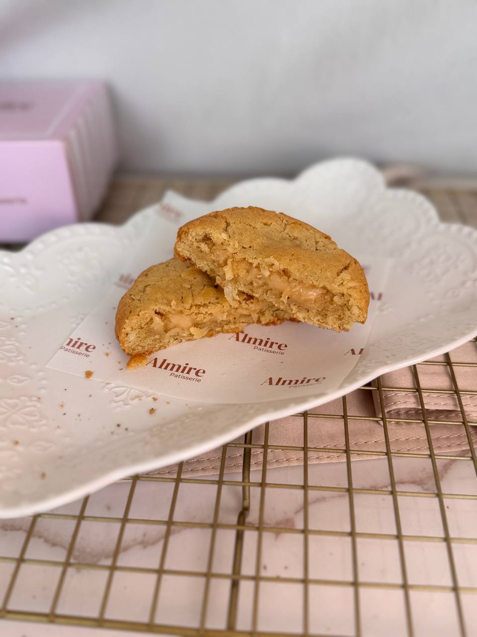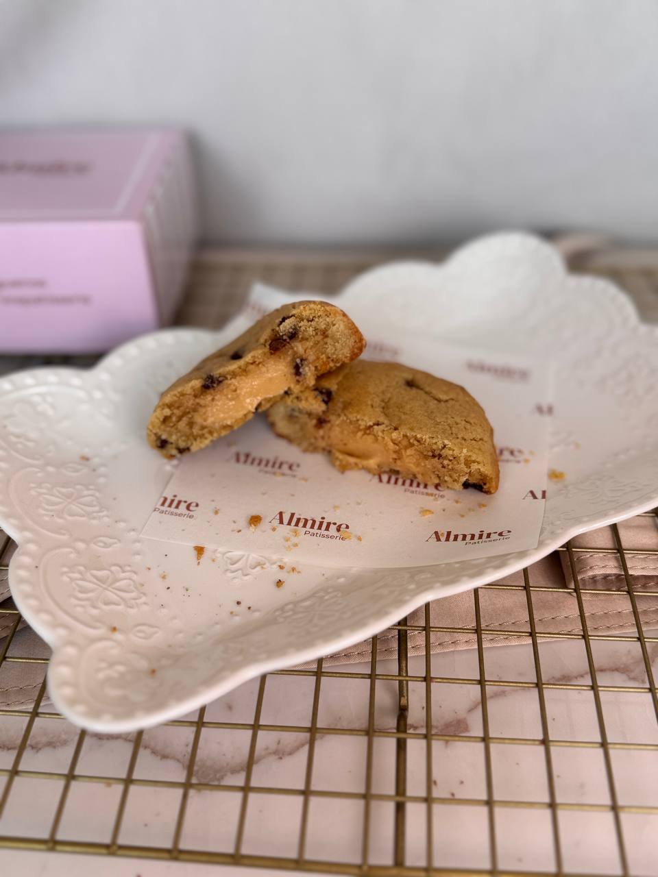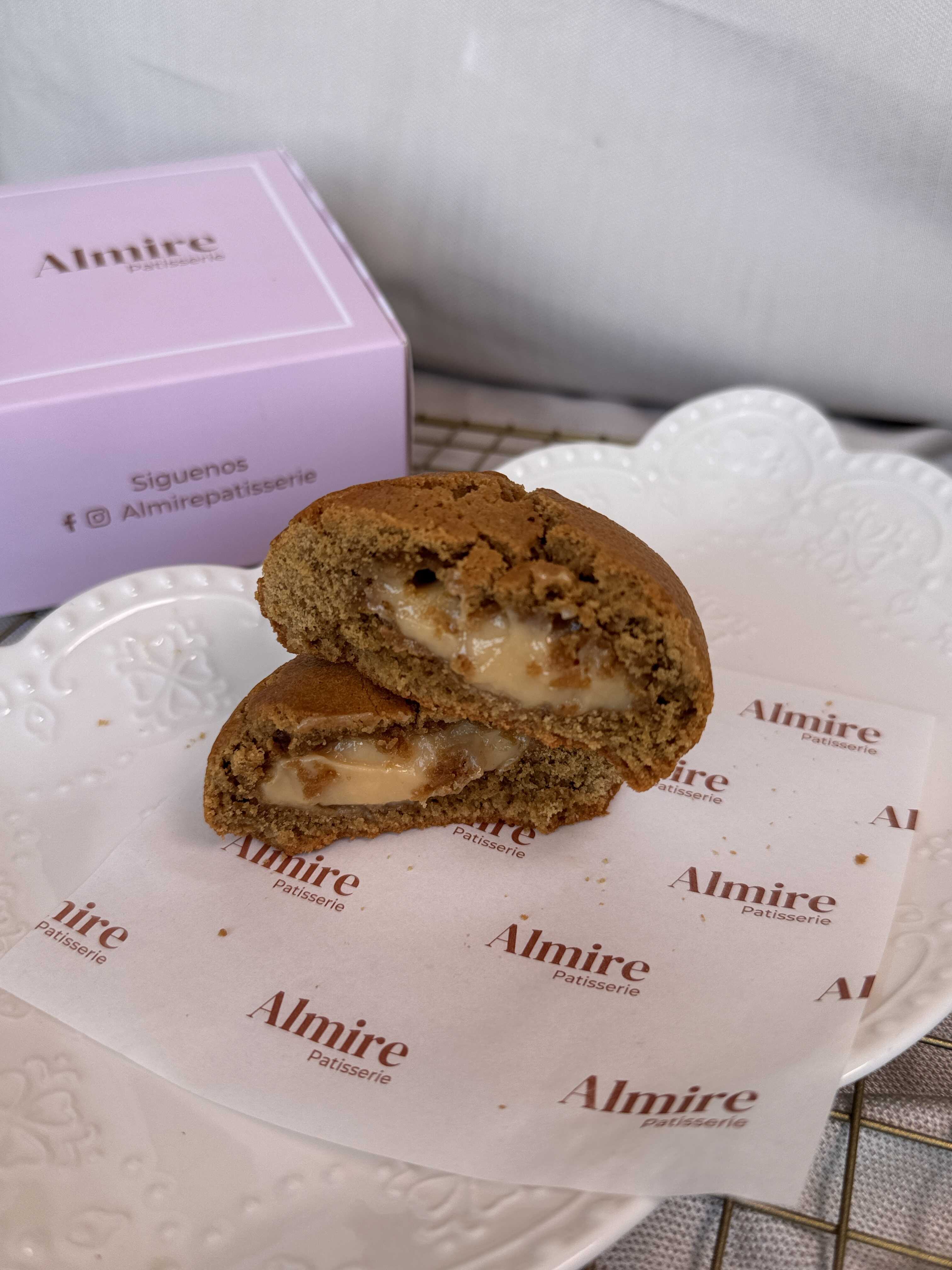 Galleta de vainilla con chispas de chocolate y manjar de olla