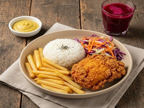 Elige el arroz de tu preferencia, dos huevos fritos y plátano bellaco. Recomendado con salsa de rocoto.