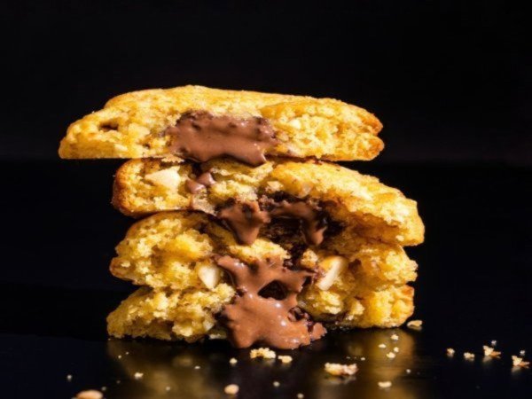 Galleta de vainilla con chunks de chocolate blanco y relleno de manjar blanco.