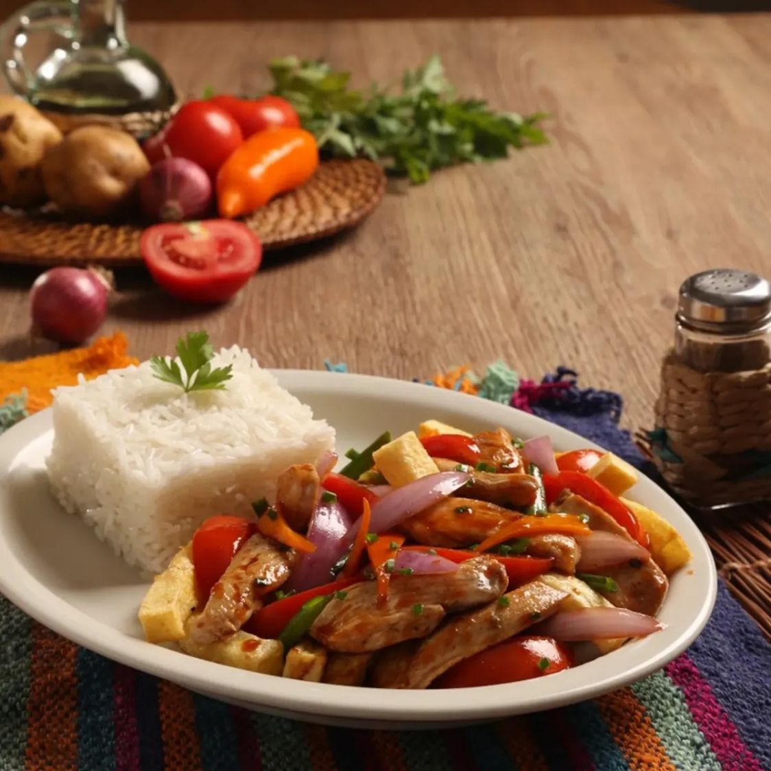 ceviche de pescado + arroz con mariscos + chicharron de pota crujientes .