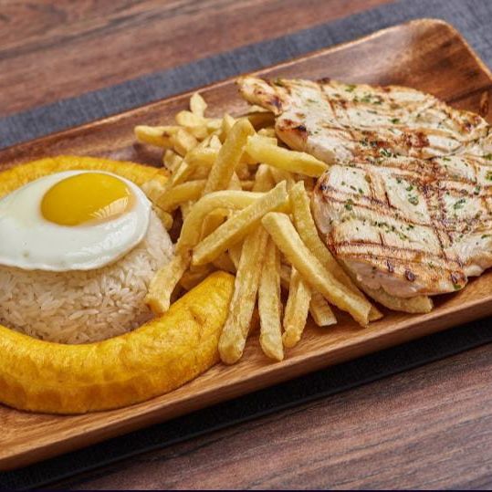Pescado frito cabrilla, arroz blanco,yuca frita , sarsa criolla