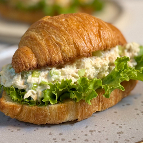Pan croissant, pollo picado con apio, mayonesa y lechuga