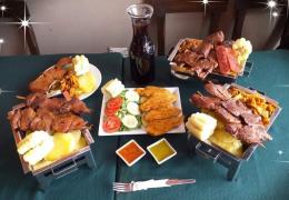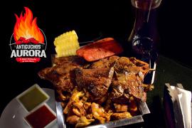 Ají de la casa y Rocoto Parrillero*1 + Rachi*1 + 3 Palitos de Anticuchos*1 + Papa Sancochada*1 + Choclo*1 + Chorizo*2 + 1 Litro de Chicha Morada*1 + Pancita*1 + Mollejitas*1 + Choncholí*1