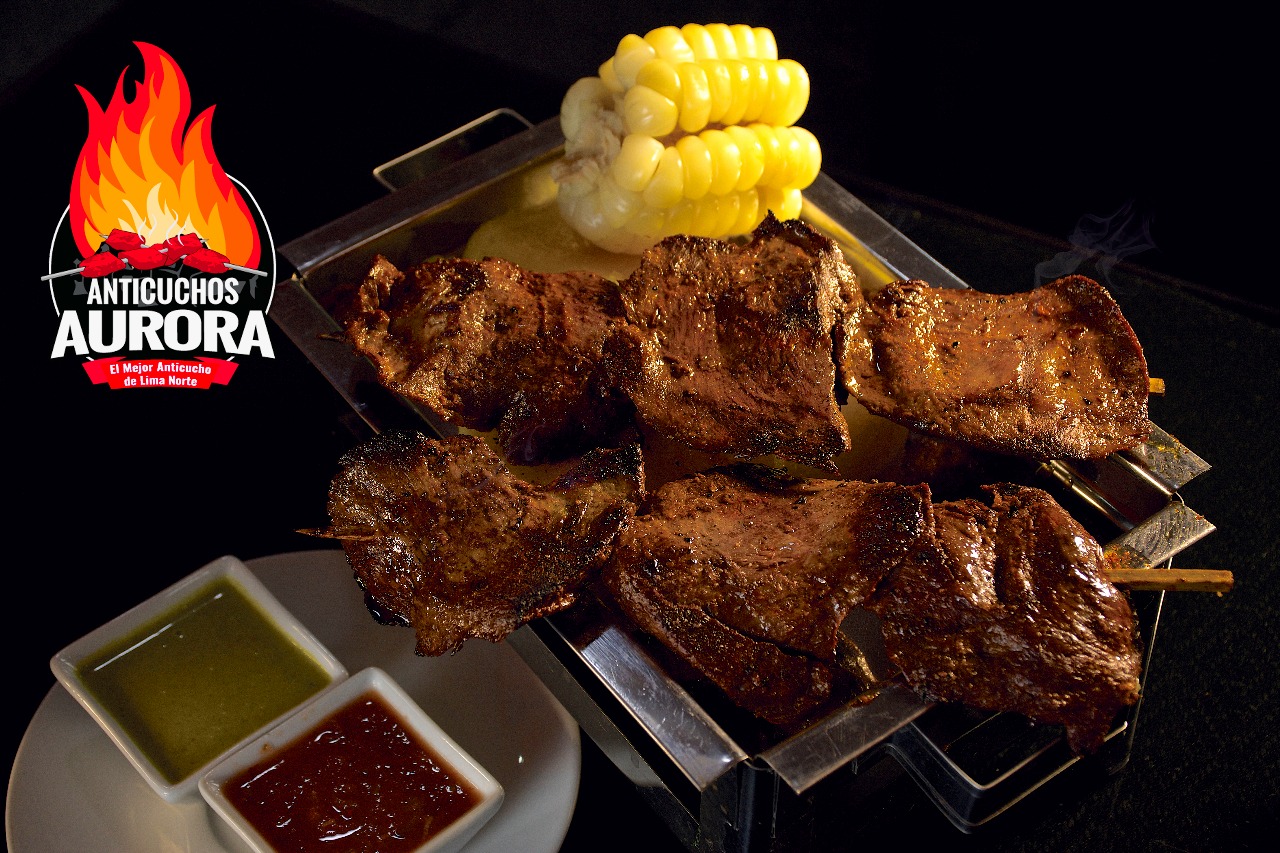 2 Palitos de anticucho, papa sancochada, choclo, ají de la casa y rocoto parrillero.