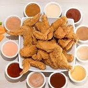 Alitas fritas acompañadas de papas fritas y salsa a tu elección.