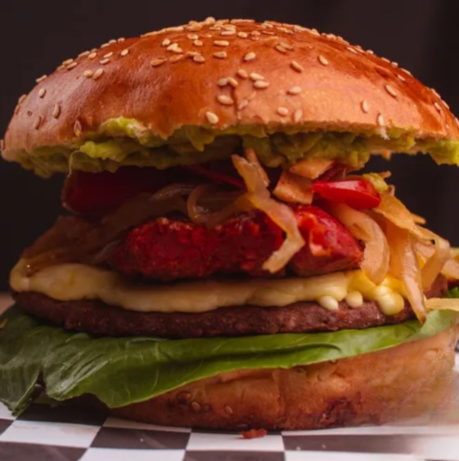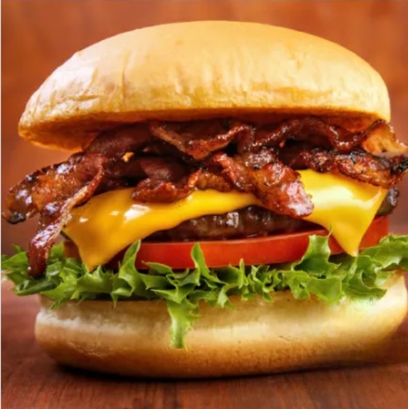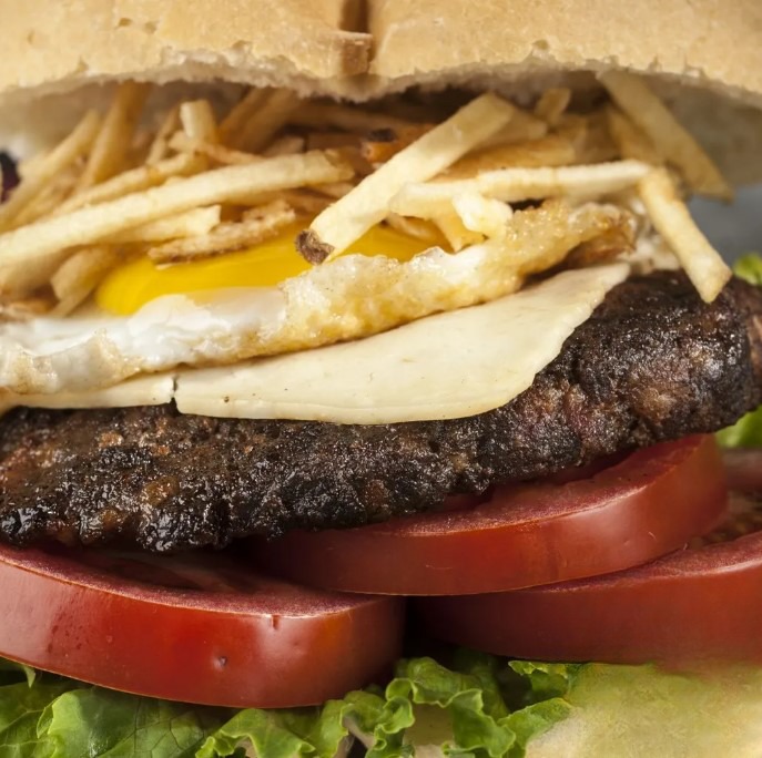 Hamburguesa a elección, huevo, queso, jamón, papas, ensalada con bebida de preferencia.