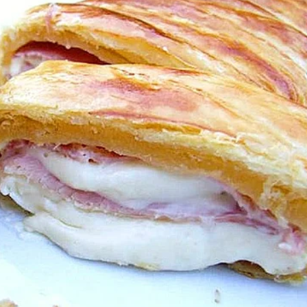 Enrollado mixto en masa hojaldre relleno de jamón y queso.