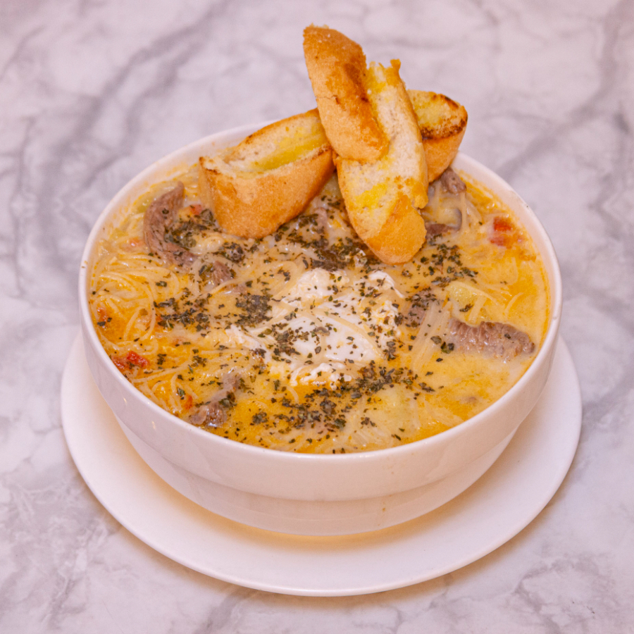 pollo + cabello de angel + papa amarilla + zanahoria.