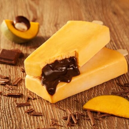 Helado de maracuyá con relleno de helado de mango.