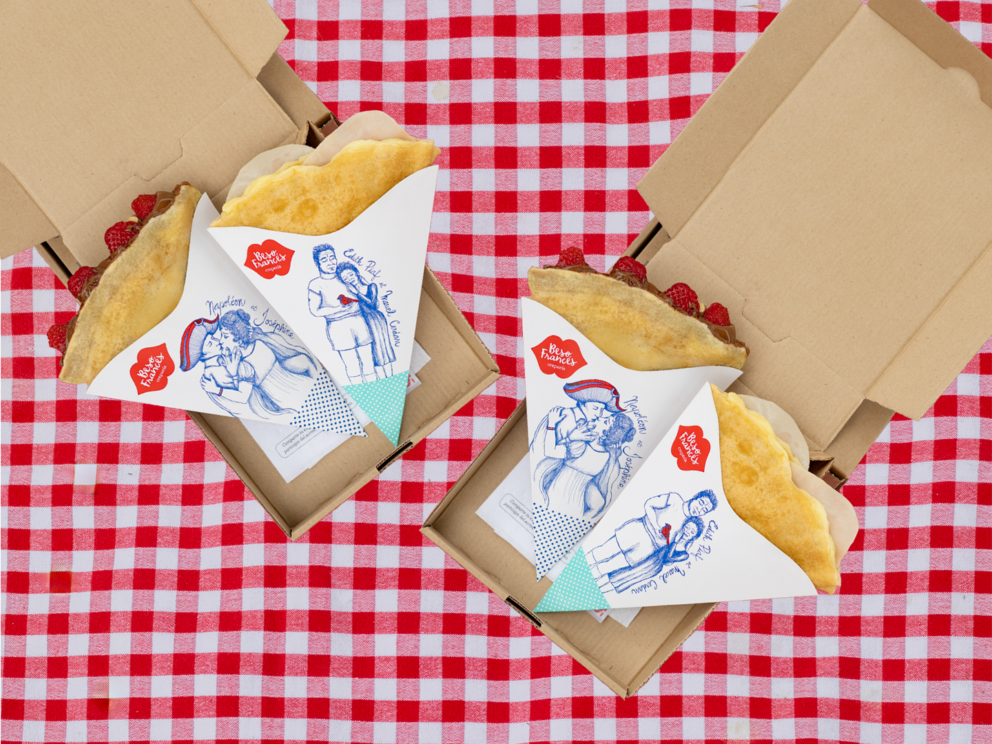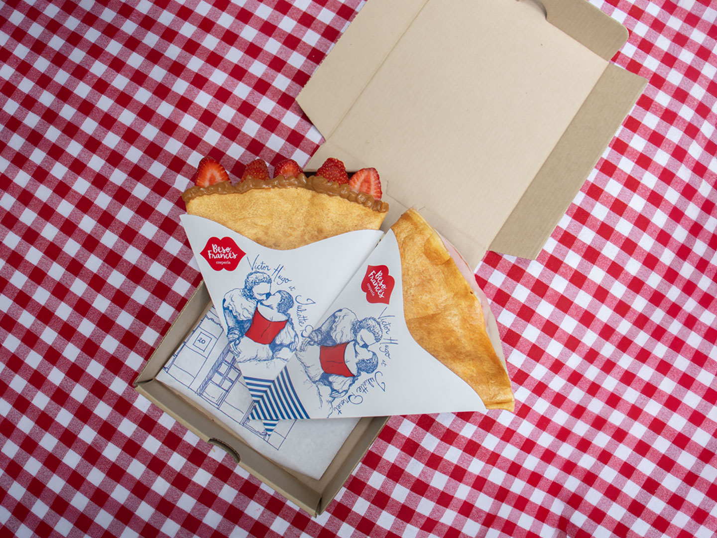 El precio de la promoción incluye 1 Crepe con Nutella, 1 bebida de fruta en botella, 1 bombón de chocolate en forma de beso y 1 carta con el fragmento de un verso romántico.