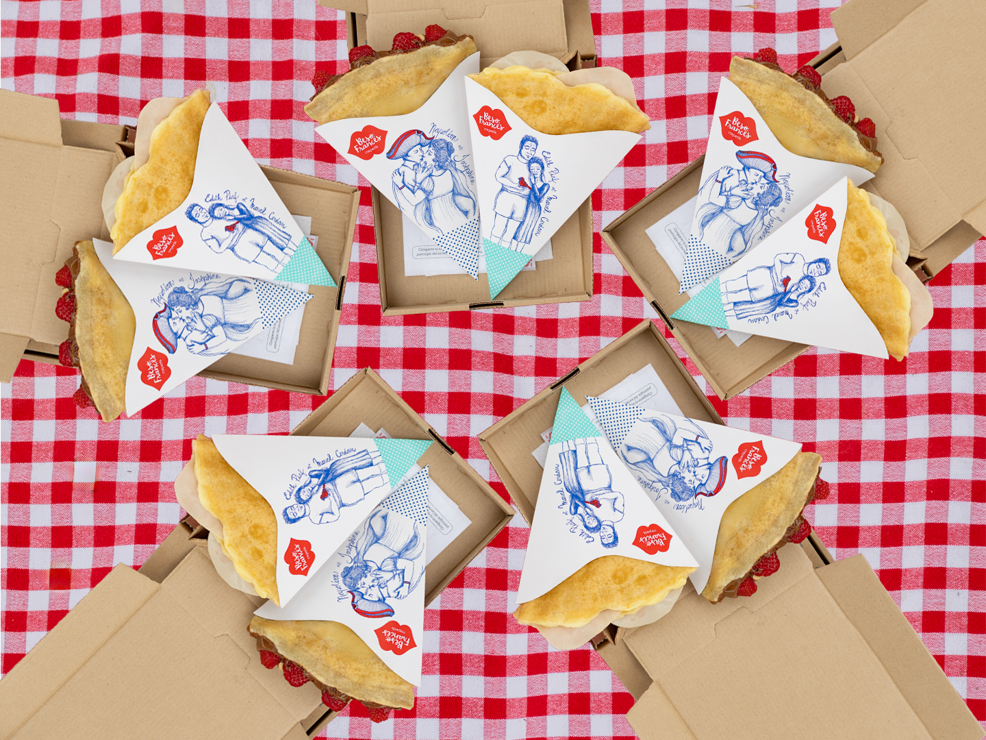 Paquete de 2 crepes (Nutella, manjar, fudge, Crema de Pistacho, Dulce de leche, Mermelada, Jamón y queso o Napolitano). Imagen referencial.