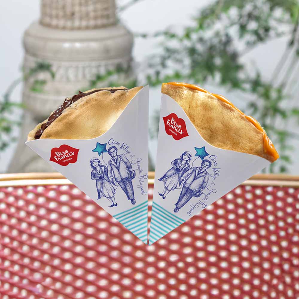 Paquete de 2 crepes (Nutella, manjar, fudge, Crema de Pistacho, Dulce de leche, Mermelada, Jamón y queso o Napolitano)