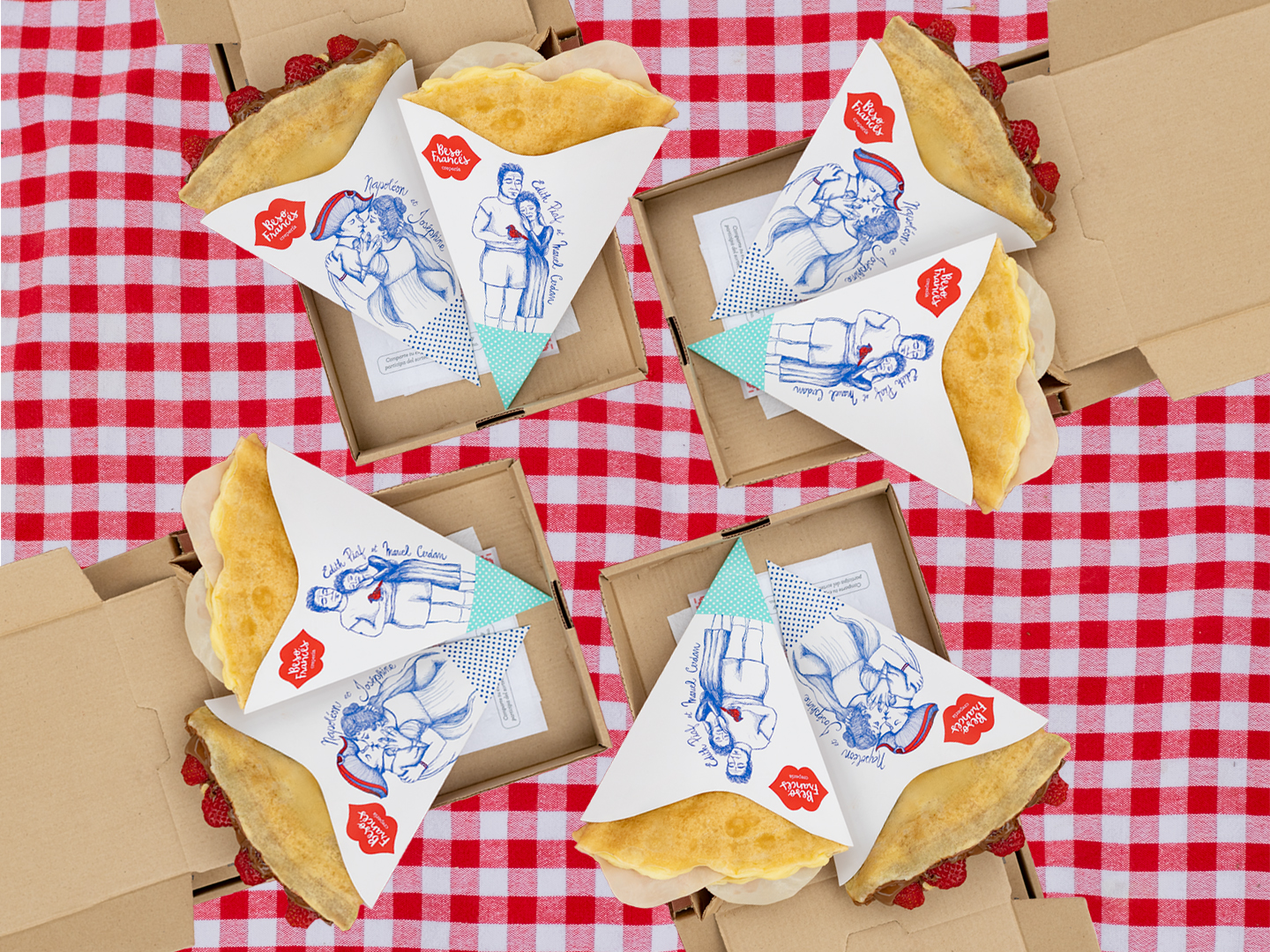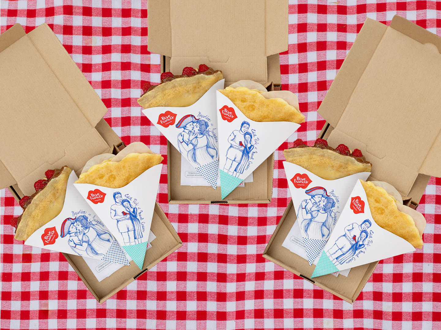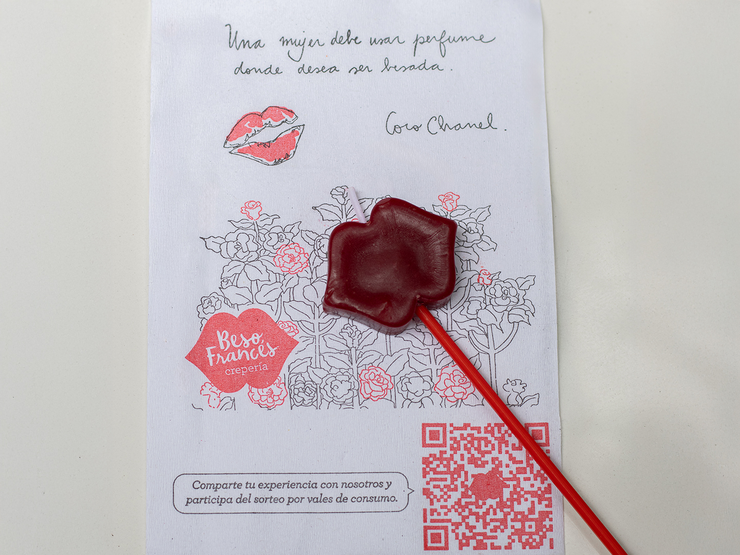 El precio de la promoción incluye 1 Crepe con Nutella, 1 bebida de fruta en botella, 1 bombón de chocolate en forma de beso y 1 carta con el fragmento de un verso romántico.