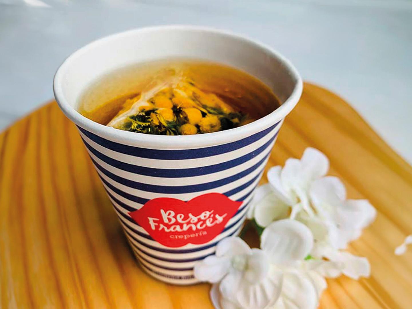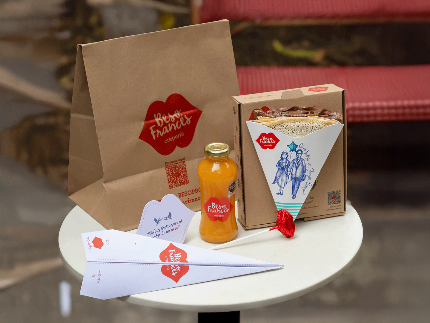 El precio de la promoción incluye 1 Crepe con Nutella, 1 bebida de fruta en botella, 1 bombón de chocolate en forma de beso y 1 avión de papel con un mensaje especial.