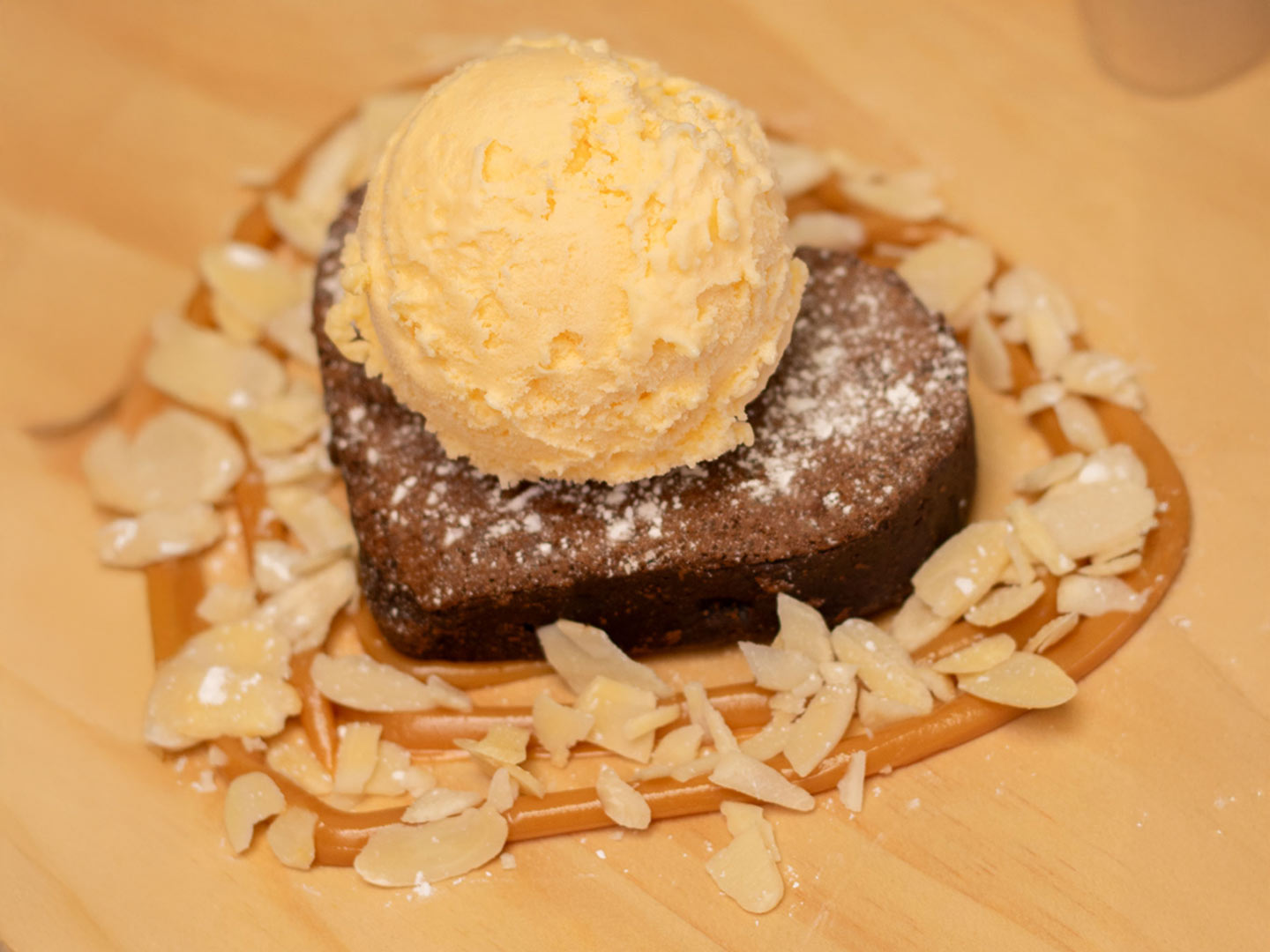 El precio de este producto incluye únicamente el brownie con manjar, acompañado de almendras laminadas y helado de vainilla.