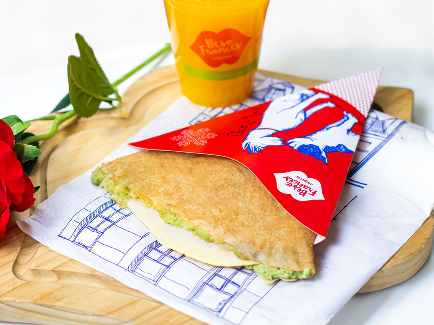 El precio de la promoción incluye 1 crepe con salsa de tomate, queso y orégano y 1 crepe de jamón y queso.