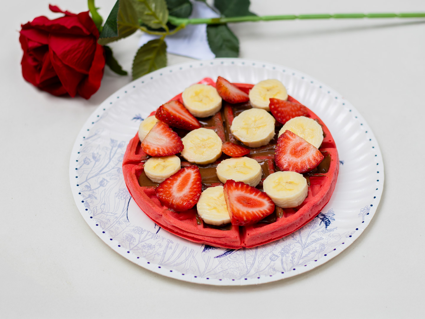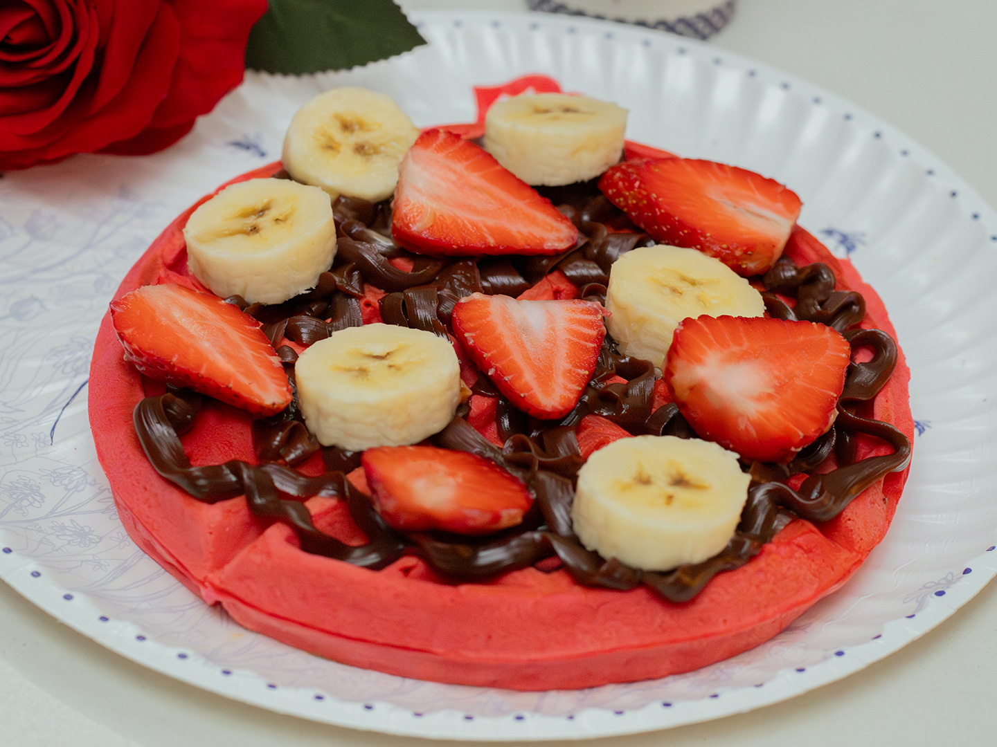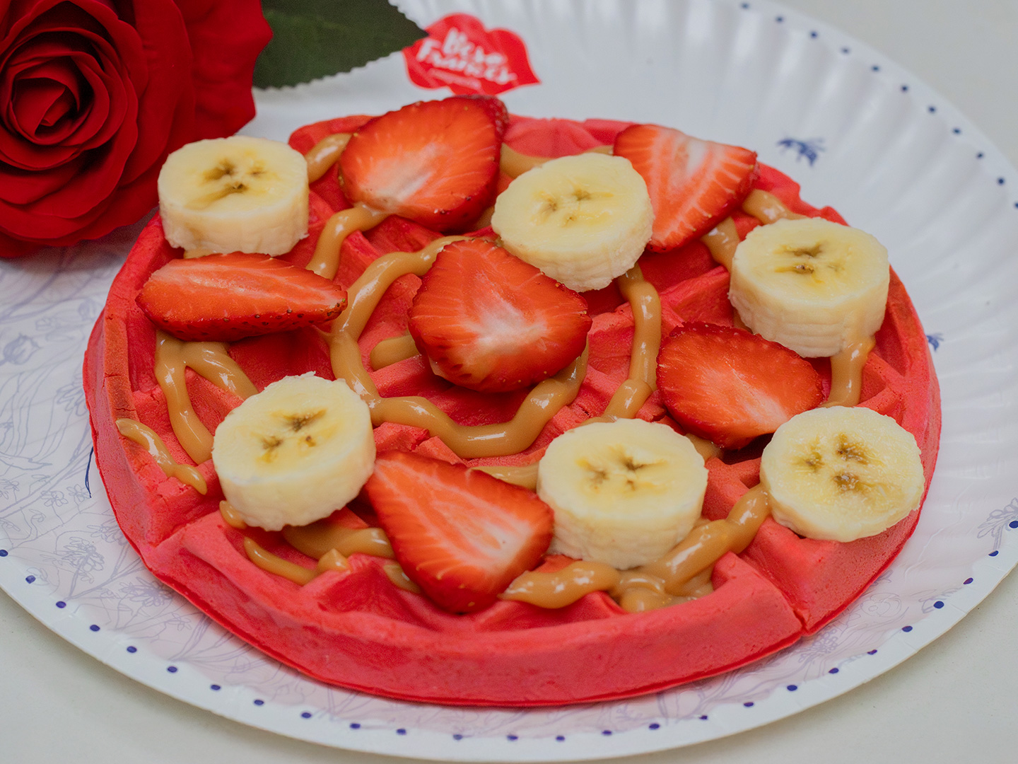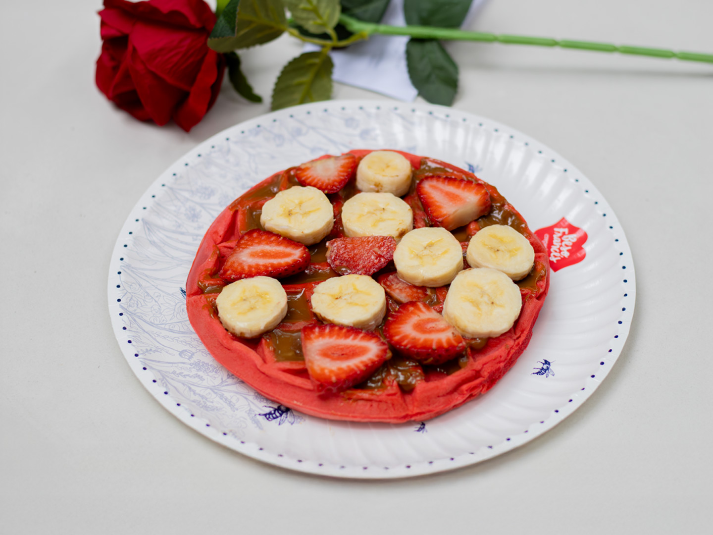 El precio de este producto incluye únicamente el waffle con mermelada de fresas. Los toppings mostrados en la imagen son referenciales y tienen un costo adicional.
