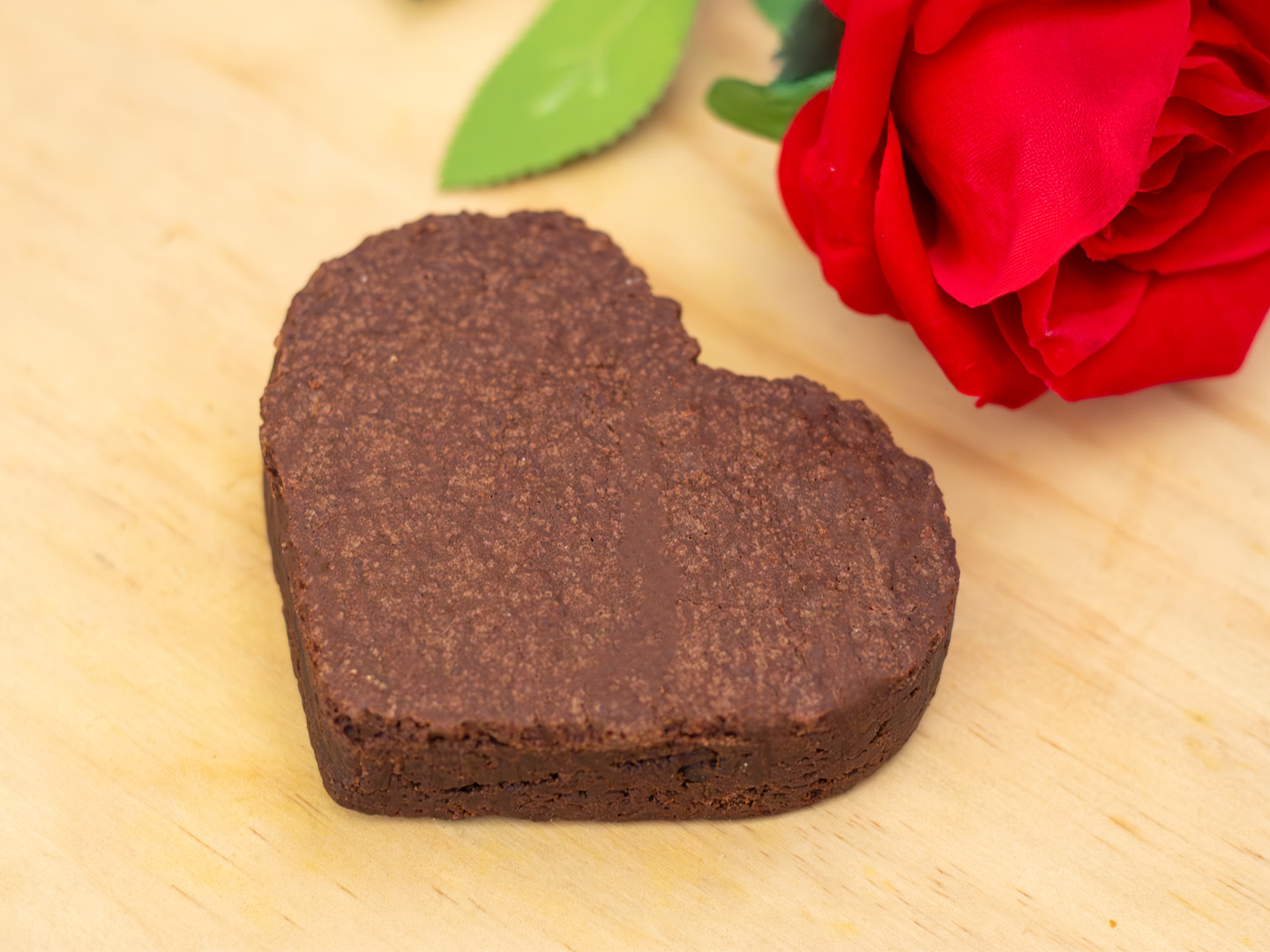 Deliciosa galleta con trozos de chocolate al 55% en forma de corazón.